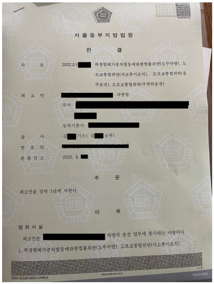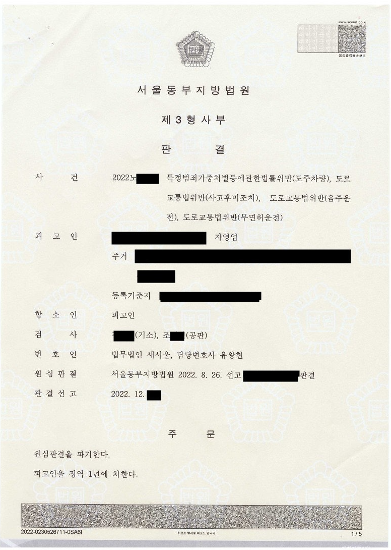 6 음주 4진(0.112%, 사고후미조치, 음주운전, 무면허운전)- 집행유예 선고!! 193