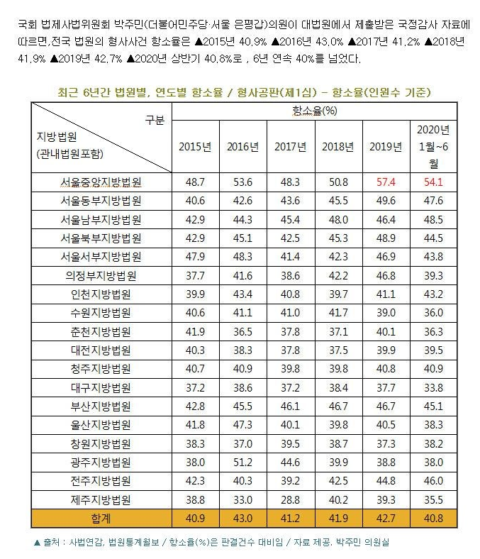 해마다 형사사건의 항소율이 증가하는 추세입니다.