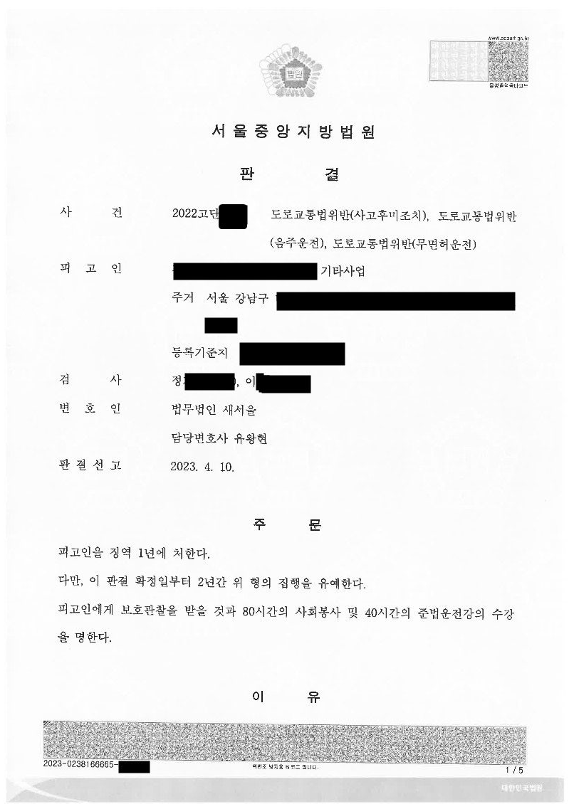 음주 4진(0.112%, 사고후미조치, 음주운전, 무면허운전)- 집행유예 선고!! 194