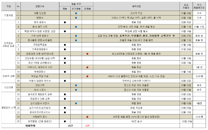 다음으로는 양형자료를 제출해야 하는 것이었는데 유변호사님께서 필요한 양형자료 리스트를 보내주셨고 제가 할 수 있는한 최대한의 자료를 만들기 위해 노력했습니다.