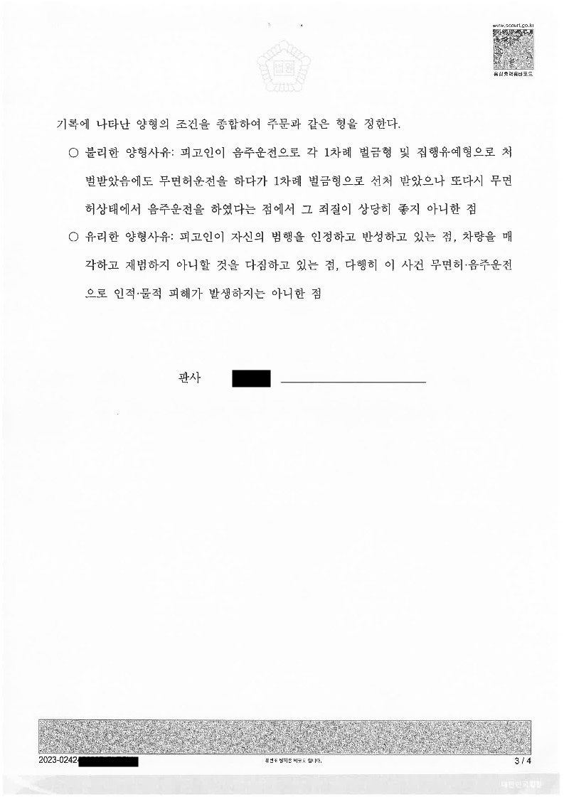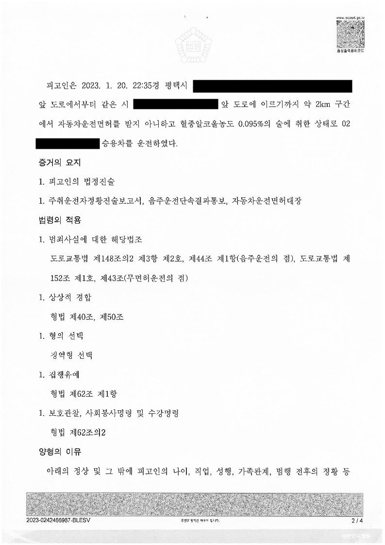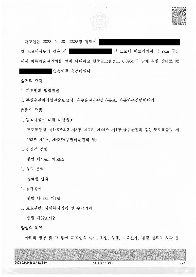 더 아타까운 것은 바로 직전에 무면허 운전이 적발되어 구약식을 받았다는 사실입니다.