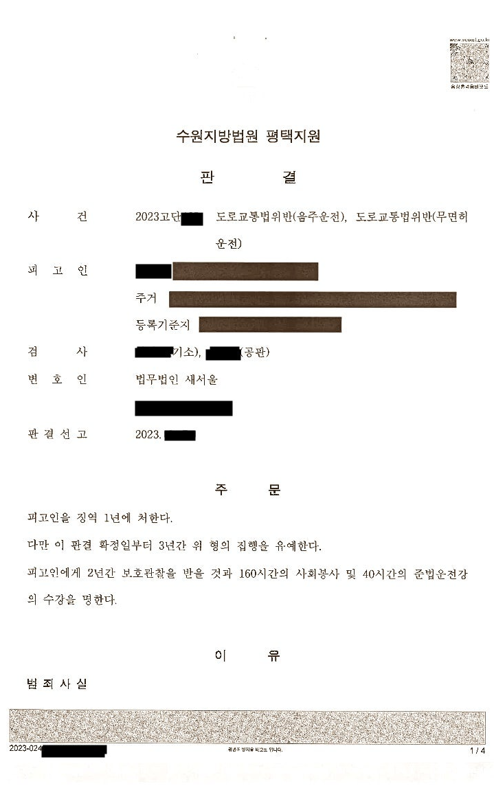 의뢰인에 대하여 간단히 말씀드리자면, 의뢰인은 이미 음주운전 3진에 무면허 2진이 있었습니다. 직전의 음주운전으로 집행유예가 있었는데 이번에 음주운전 4진으로 저에게 사건을 의뢰하게 되었습니다.