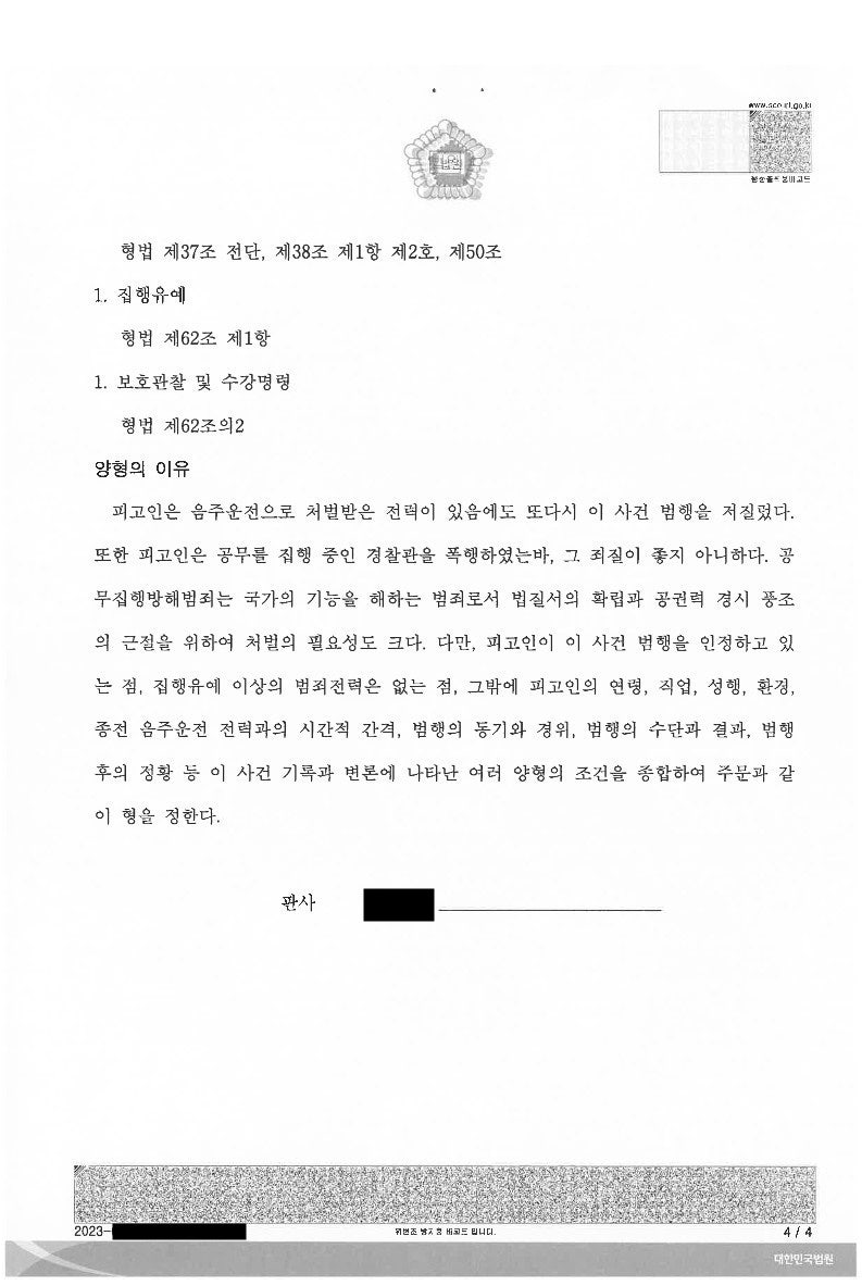 음주운전 후, 사고, 측정거부, 공무집행방해------집유선고