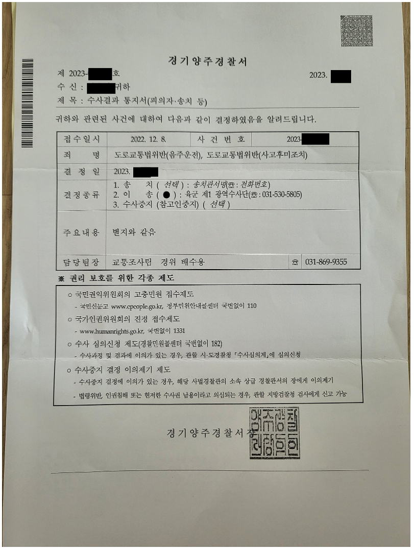 이번에 음주운전에 대하여 혐의없음 처분을 받게 된 사건을 소개하고자 합니다.