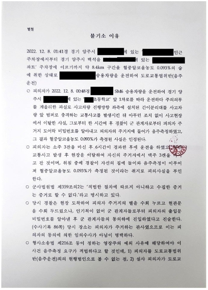 더욱 걱정인 것이, 군인의 경우 국방부 군인 징계업무처리 훈령에 의하여 혈중알코올 농도 0.008 이상인 경우 강등과 정직의 징계를 받게 됩니다. 이번 사건의 경우 한 사람의 인생이 달린 중요한 사건이었습니다.